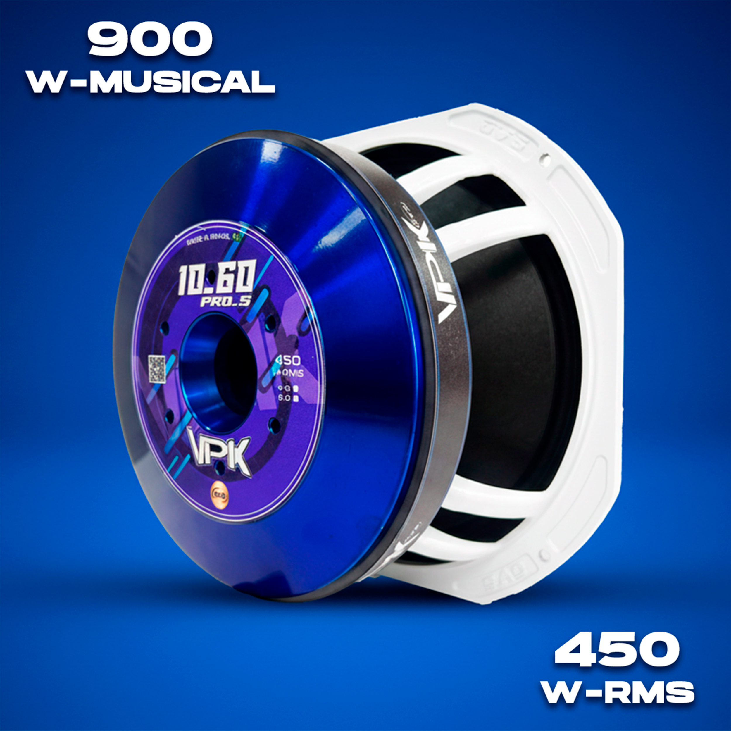 Projetado com carcaça maior, cone mais fundo e design robusto, o VPK 10-60 PRO S garante a estabilidade necessária para liberar 450W RMS de pura potência. Escolha entre as versões 4 Ohms ou 8 Ohms e transforme seu sistema com médios graves marcantes e performance de nível profissional.
